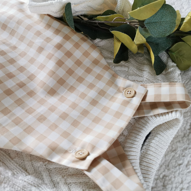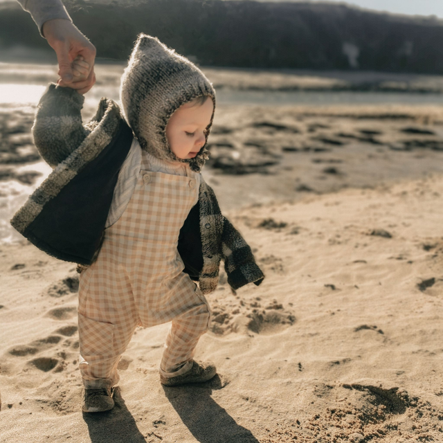 Angus Dungarees made in Art Gallery Fabrics 'Beige Plaid'.
