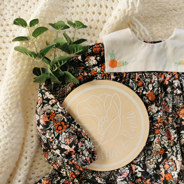 Made from Quality Art Gallery MillieFiori Fabric, finished with a vintage look sailor bib, hand Embroidered with co-ordinating Blooms.