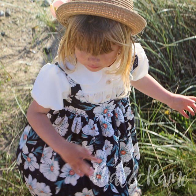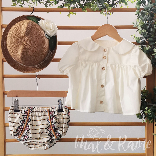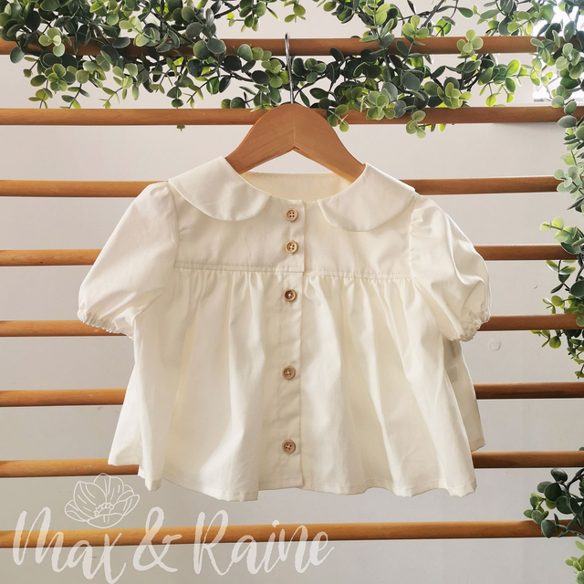 Merryn is a sweet, simple blouse, with button up front, puff ball sleeves and Peter Pan Collar, she is the perfect blouse to complete your little ones outfit. She looks adorable layered under Pearl, or tucked into a pair of Penny's! We just can't get enough of her!