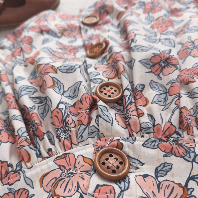 Beautiful Pink Floral Skirt with Button up front detail, with delicate flowers embroidered details on the buttons.